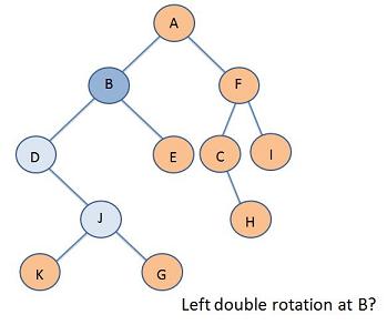 As I mentioned in an earlier note, the single rotations had a double left or double right structure below the center of rotation. This is an echo of the real issue: The subtree that needed to be shortened - the X subtree in the earlier diagrams, was found by starting at the central node and either going left twice or right twice.
